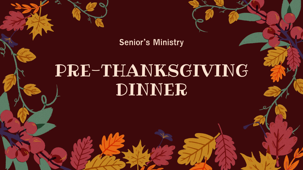 Our Senior's Ministry will be going to Ocean Palace Restaurant on Thursday, October 9th at 5:30PM for a pre-Thanksgiving dinner. Please call the church office (604-943-8244, Monday - Thursday, 9AM - 4PM) to RSVP or email the office by clicking the button below. The last day to RSVP is October 7th.