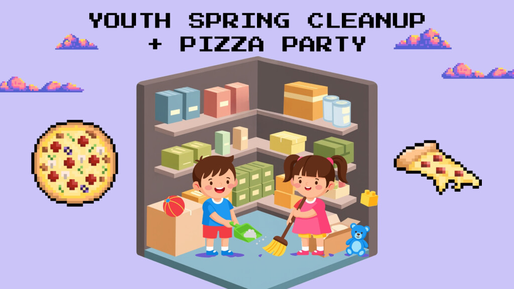 Join us from 10AM-1PM for our Youth Spring Cleanup + Pizza Party. The plan is to clean up the Youth Center, throw away some old stuff, and dream about what we could add or change to make it a space students genuinely enjoy being in, and inviting their friends into.